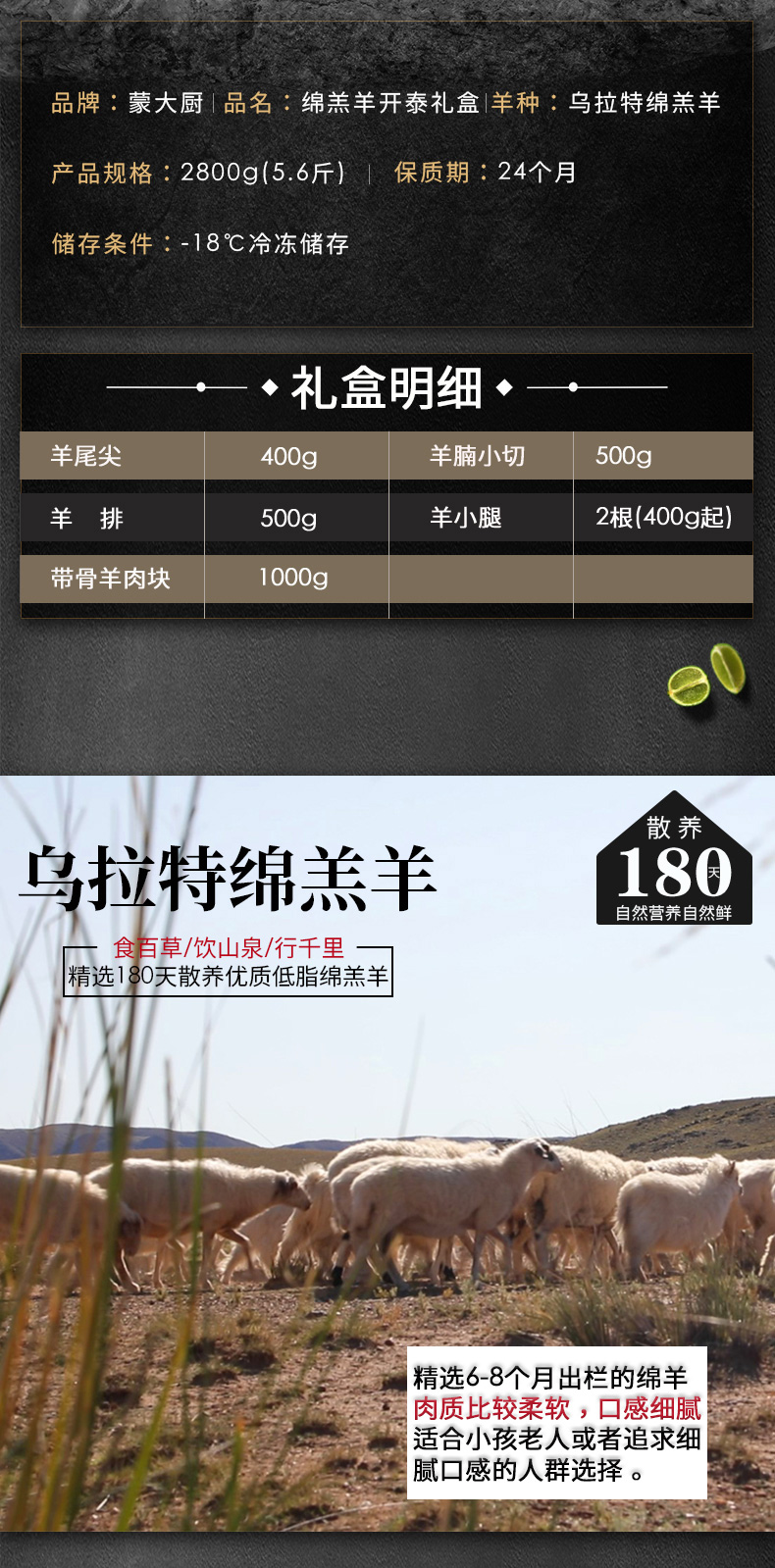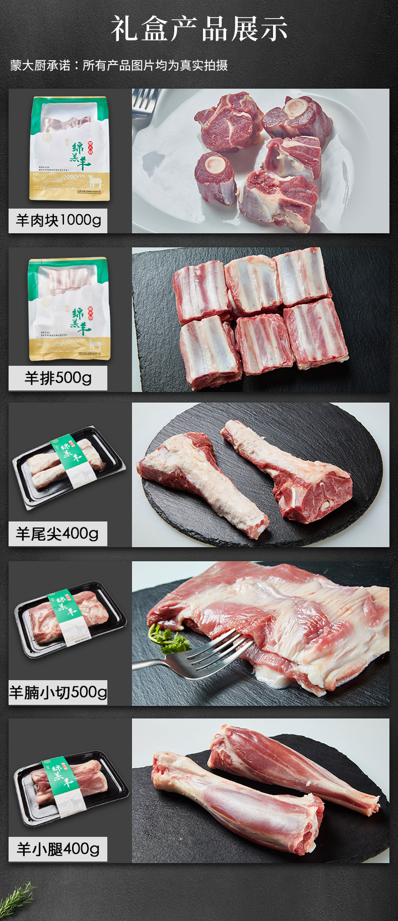 蒙大廚 內蒙古綿羔羊羊肉禮盒5件5.6斤 送禮優(yōu)選