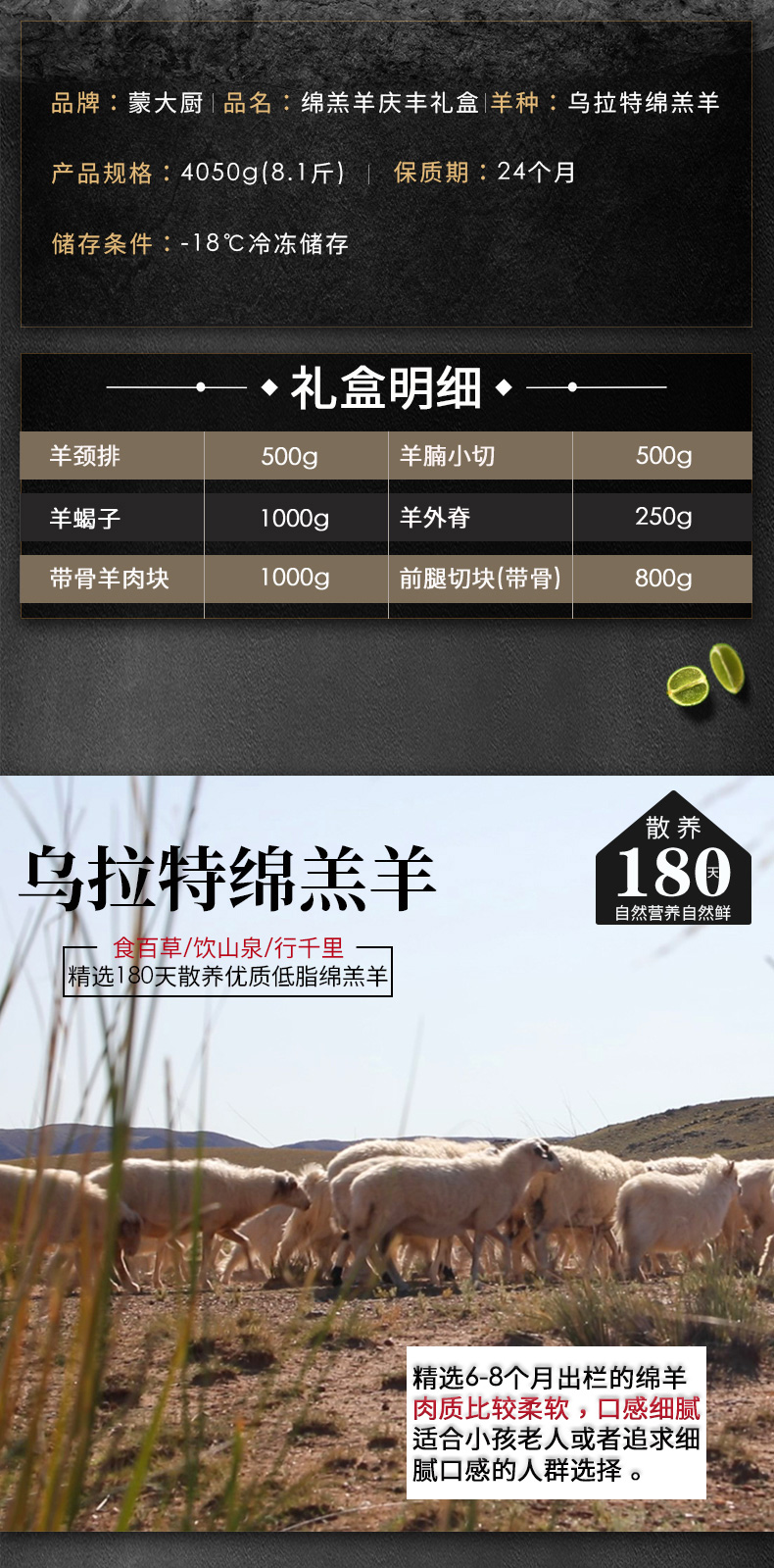 蒙大廚 內蒙古綿羔羊羊肉禮盒6件8.1斤 送禮優選