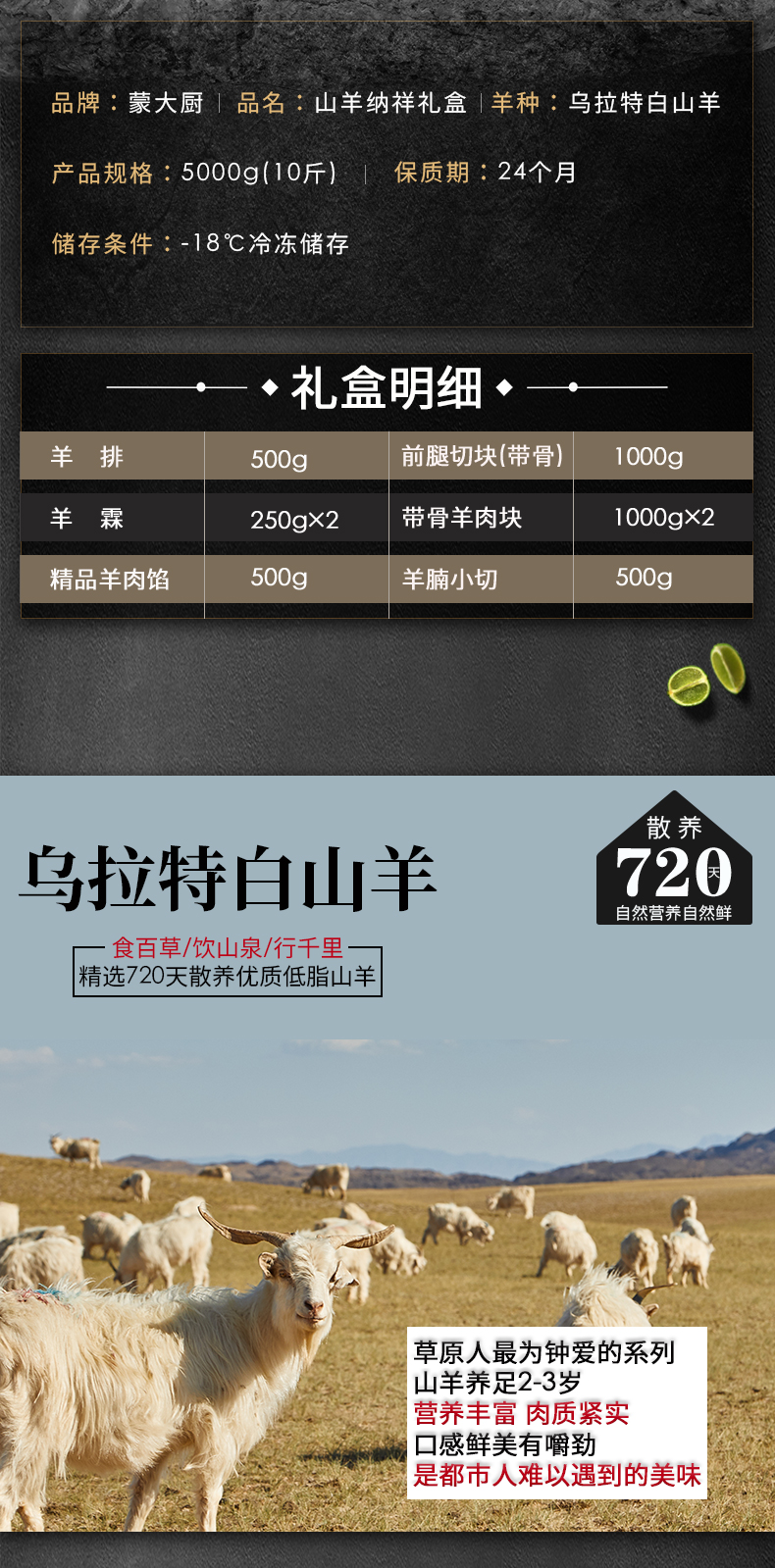 蒙大廚 內蒙古山羊羊肉禮盒8件10斤 內蒙草原優禮